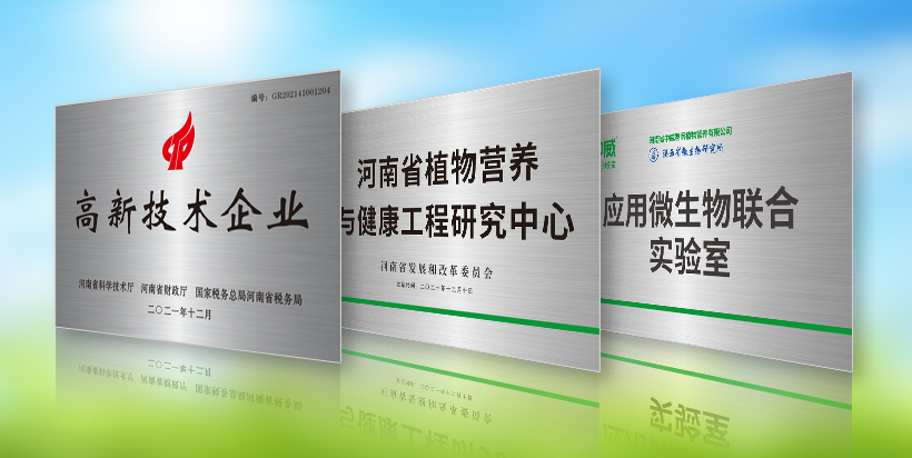 國家高新技術企業、河南省“專精特新”中小企業、“河南省植物營養與健康工程研究中心”,與西安交通大學、陜西省微生物所聯合建設“應用微生物聯合實驗室”。